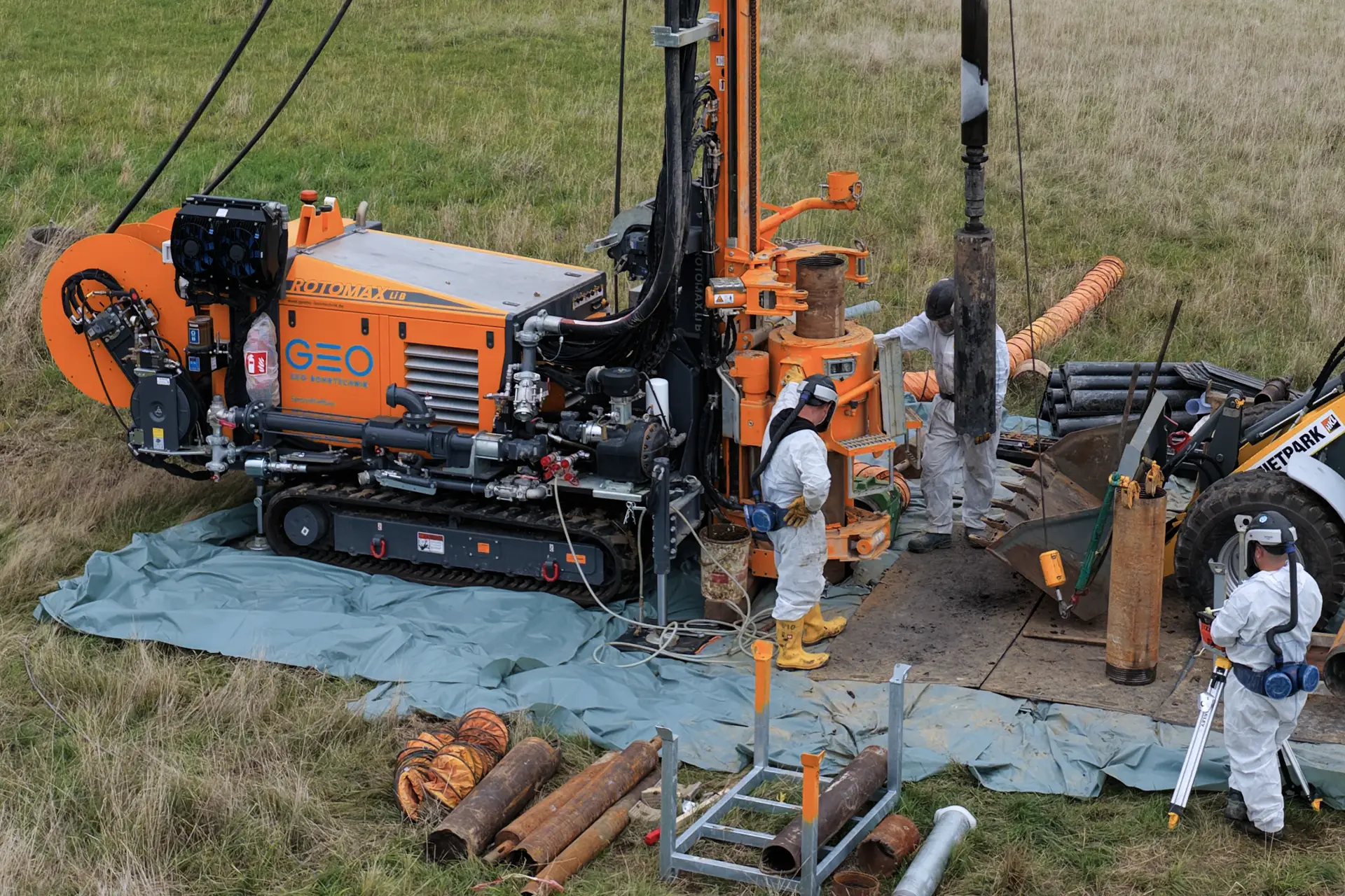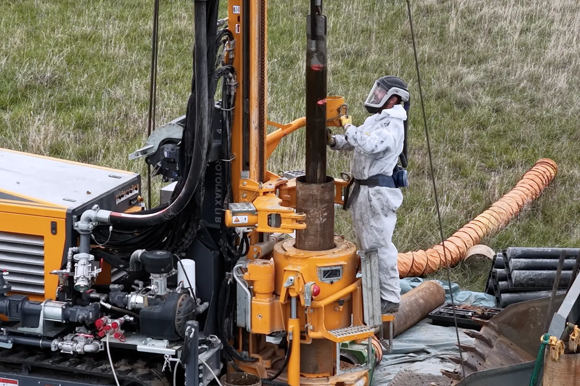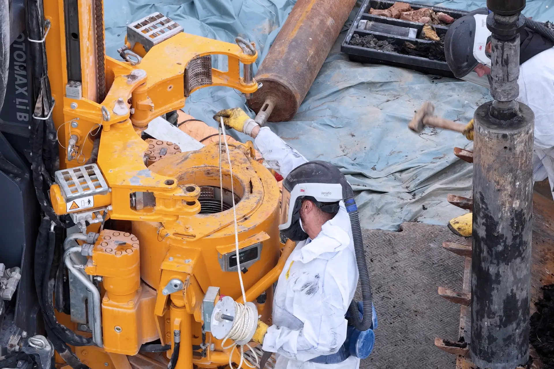 Der Verrohrungs-Drehtisch der HD 140 ermöglichte das gleichzeitige Drehen und Abteufen der Schutzrohre. Dadurch blieb das Bohrloch stabil, und das Eindringen von kontaminiertem Material in tiefere Schichten wurde begrenzt. Die entnommenen Bohrkerne wurden beprobt, dokumentiert und unter Schutzbedingungen zwischengelagert.