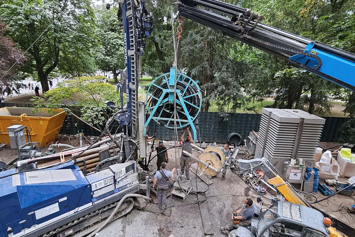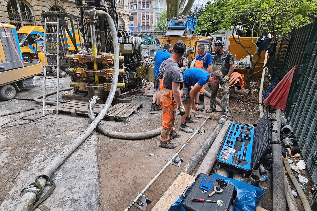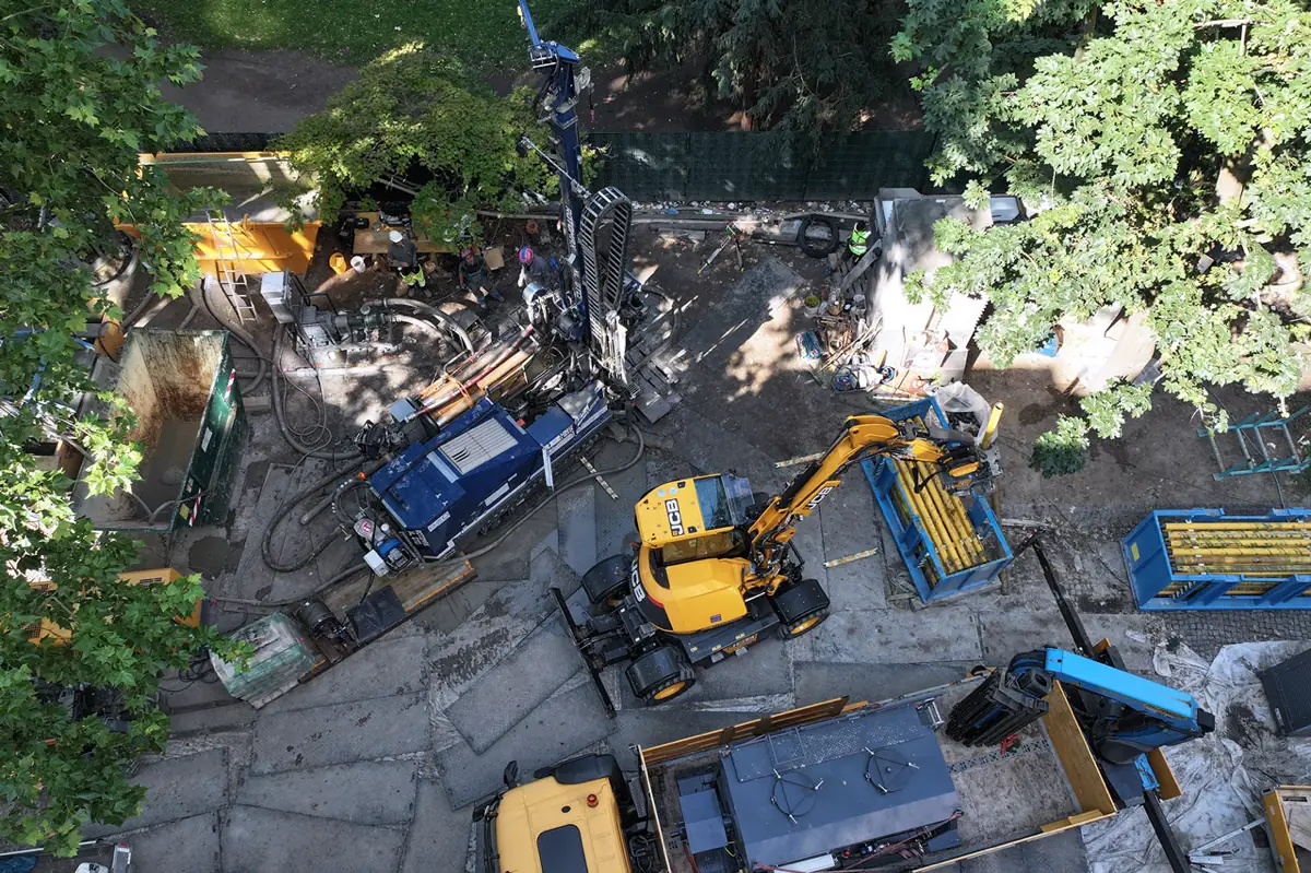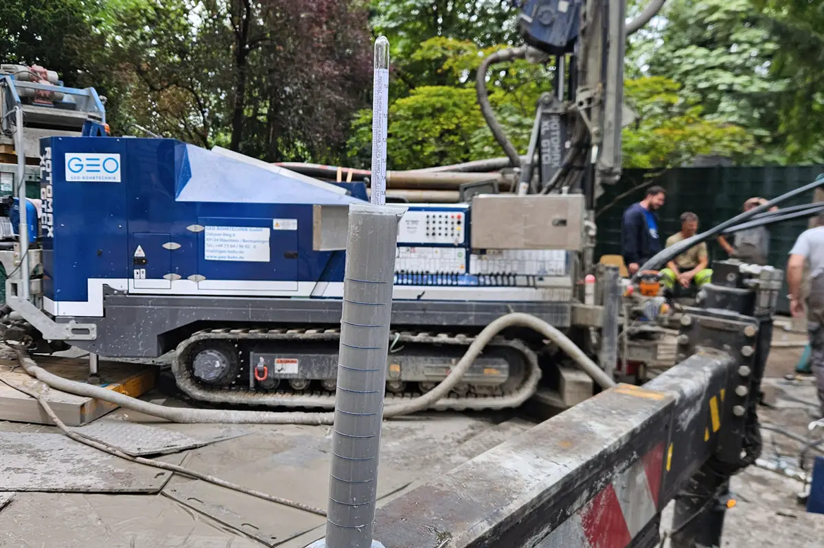 Die Messungen bestätigten eine ausgeprägte Wärmeanomalie mit Quelltemperaturen bis zu 40°C in der Endteufe. Damit liefert das Projekt eine solide Grundlage für die klimafreundliche Energieversorgung des neuen Hochhauses und zeigt, dass tiefe Bohrungen dieser Dimension selbst unter innerstädtischen Bedingungen präzise und sicher umgesetzt werden können.
