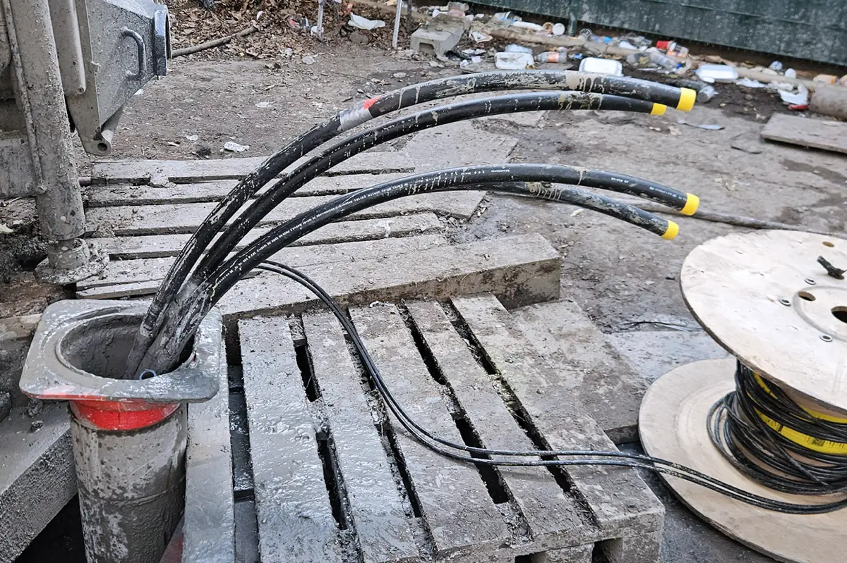 - Kombination aus Doppel-U-Sonde und Hybridkabel für Wärme- und Datenerfassung