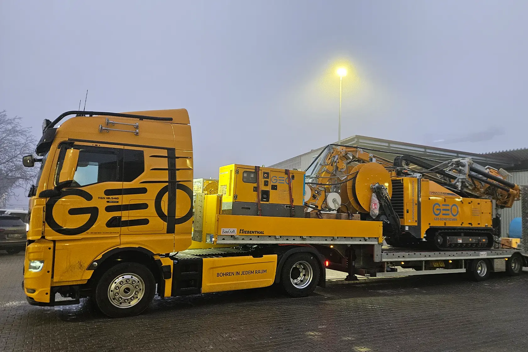 Zur Sicherstellung maximaler Flexibilität bewerkstelligen wir unsere Baustellenlogistik komplett in Eigenleistung. Dazu steht uns ein moderner Fuhrpark mit eigenen Fahrern zur Verfügung. Da wir nur Kleinbohrgeräte und selbstfahrende Bohrgeräte einsetzen, sind für unsere Transportfahrten keine Sondergenehmigungen erforderlich.